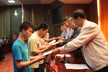 高职数维项目裁判长周继伟;中职车工项目裁判长王鸿业分别对赛事进行了总结与点评,随后,省派联络员莫汉初宣读了此次比赛获奖名单,到场领导与嘉宾为获奖选手颁发了奖金与奖品。至此,2012年湖南省职业院校专业技能竞能赛我院赛点圆满落幕。