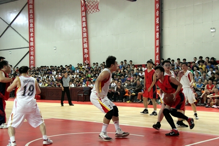 总决赛中,我院与长沙民政职院的冠军争夺赛尤为精彩。比赛一开场全场观众热情就被掀起,球赛很快进入白热化对战阶段。我院代表队率先得分后打出一波得分小高潮,民政职院也一直紧追其后,在第一节中比分差距一直保持在5分以内;在第二节中民政职院奋起追赶,在内线连连得分,而正在此时刘建湘院长接过刘星欣老师传球投篮得分,重新拉开与民政职院差距,在第二节结束时已领先对手11分;到了第四节,民政职院调整战术频频在外围投篮命中,比分眼看追平,场上的气氛越发紧张,双方啦啦队也暗暗较劲,加油声、锣鼓声不绝于耳。我院代表队及时调整战术,以快攻为主,通过一系列内外配合和身高优势的利用连续命中得分,又夺回了领先优势,并甩开民政职院的追击。在比赛时间剩下3分钟时,场上又现高潮,刘建湘院长罚球得分、刘学老师连续上篮得分,赢得全场热烈欢呼。最终我院以104比79的绝对优势战胜对手赢得冠军,也给历时九天的“院长杯”赛事画上一个完美的句号。