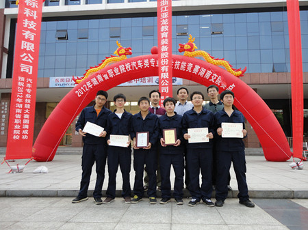 在本次竞赛中,我院汽车工程学院共派出三支代表队参加比赛。我院代表队以高超的专业技能和良好的团队合作精神,沉着冷静、积极应战,汽车检测与维修两支参赛队均取得佳绩。其中,何机陆、李宣宣、侯成林三名选手发挥出色,勇夺2012年湖南省职业院校高职汽车检测与维修技能大赛第一名(一等奖);桂志伟、黄超、徐万禄三名选手夺得第十名(三等奖)。模具参赛队两名选手袁世杰、彭丽夺得高职工业产品造型设计与快速成型技能大赛第二名(二等奖)。