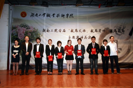 经过一个多月的激烈角逐,来自学院各个系共14名优秀选手进入了当晚的总决赛。演讲中,选手们发挥十分出色,深深的打动了在场的所有人。评委们根据选手们的临场表现和综合演讲素质进行了评分。来自机制S10-5班蒋宗街同学带来的演讲《感恩的心》获得了一等奖,同时他将会被推荐参加由省教育厅组织的感恩演讲比赛。计应S10-1班的杨清茸和汽车S10-2班的王智同学获得二等奖,机电外贸S11-1班的周红萍和汽运S11-5班的将桂兰同学获得三等奖,其余选手获得了优胜奖。随后,评委老师们为获奖选手进行了颁奖。