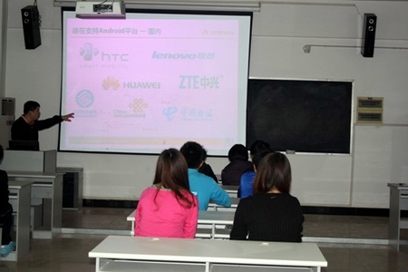 4月5日下午,信息工程系邀请安博牛耳的资深Android开发工程师姜维为该系软件技术专业的师生举办了一场移动互联网应用开发讲座。姜维工程师围绕移动互联网的发展趋势、Android发展历程、Android人才需求及市场预测、Android实际项目开发等方面进行了专题讲座,与同学们围绕智能手机(终端)应用相关问题进行了积极互动,并就信息工程系软件技术专业(移动应用开发方向)的课程体系构建、教学实施等方面与专业教师进行了深入探讨。