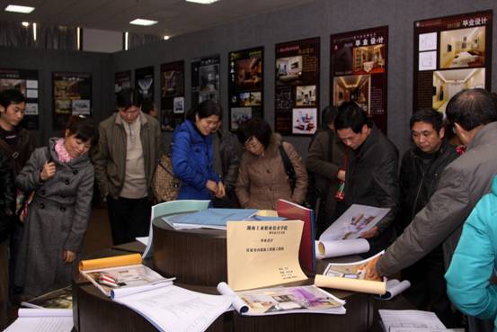 观摩会由参观“室内设计技术专业毕业设计”作品和专业教师汇报两部分组成。参观过程中,一幅幅设计精美别致的装修装饰作品,一幅幅寓意深刻的公益招贴画,无不给观摩者带来视觉的冲击和心灵深处的共鸣。大家纷纷驻足欣赏,认真听取专业老师和学生的详细讲解。