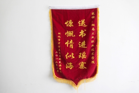 怀化市中方县蒿吉坪民族学校日前寄来感谢信和锦旗,对由我院全体教职工捐赠的“爱心书屋”在该校顺利落成表示衷心感谢。感谢信中说,“我们瑶寨学子一定好好读书,好好学习,把您们所捐之书全部细读,将‘爱心书屋’之书彻底诵览,把您们的爱心传承下去,将您们的大恩大德留传永远”。