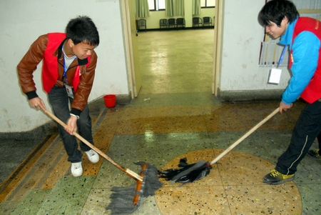 志愿者们认真打扫卫生
