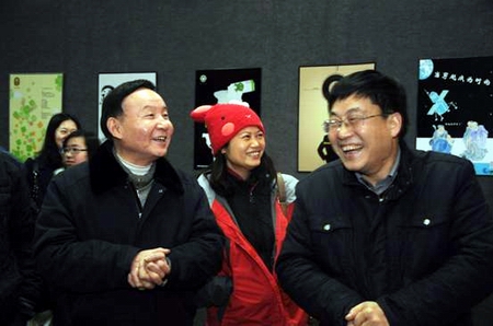 3月8日下午,我国资深广告人、“中国八大策划人”、“中国十大策划流派代表人物”、“影响中国策划业的21个人”之一的张大旗老师应邀来到我院,学院党委书记龙承海对张老师的到来表示热烈欢迎,并陪同参观了现代设计艺术系2012届广告设计与制作专业学生的毕业设计作品展。