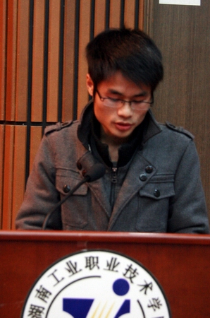 国家奖学金获得者、三好学生获得者、机械工程系S09-1班学生、博世班学员唐伟杰同学作为学生代表上台发言