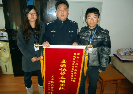 天心区交警大队为志愿者颁发“交通协管文明团队”锦旗