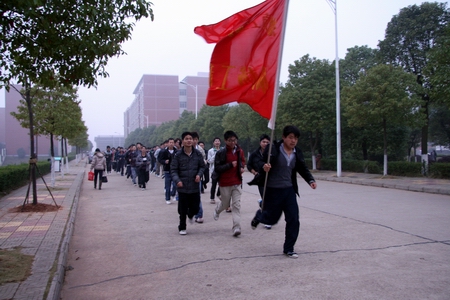 冬季的早晨虽然有些寒意,但却抵挡不住同学们如火的热情。各系代表队排着整齐的队伍,摩拳擦掌等待起跑号令。随着周文部长宣布活动开始的一声号令,满怀热情的同学们从新纪元广场出发,沿着学校环形公路,途经办公楼、实训楼,绕过鹤鸣山,经图书馆、田径场,最后回到新纪元广场,完成长跑路线。
