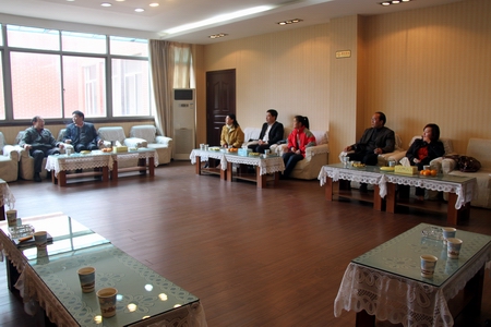 我院党委书记廖洪元(左)出席座谈会 对陈晓明副主任(右)一行的到来表示欢迎