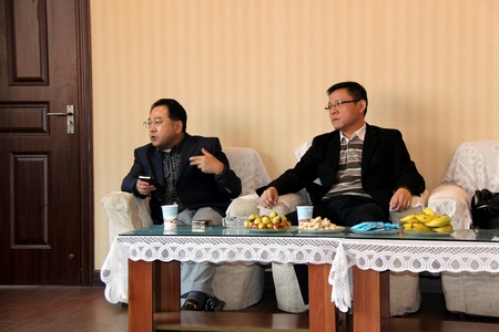 中国国际人才交流基金会项目开发部部长王立社(左),湖南省外国专家局、湖南省国际人才智力交流协作中心副主任刘旸(右)来我院调研