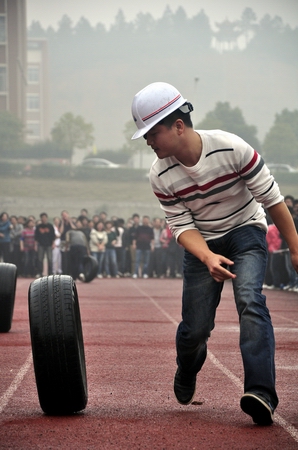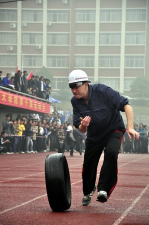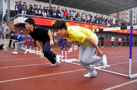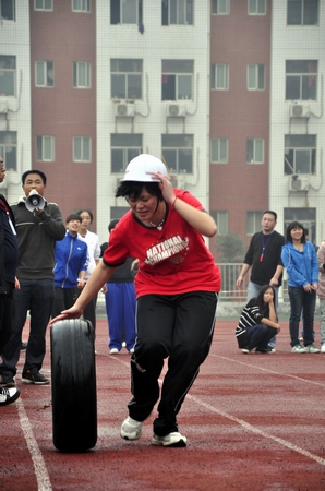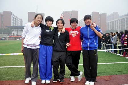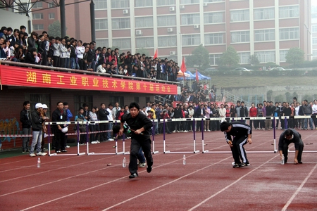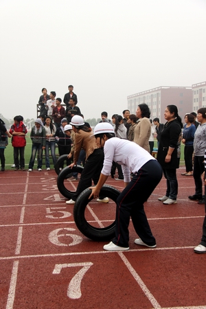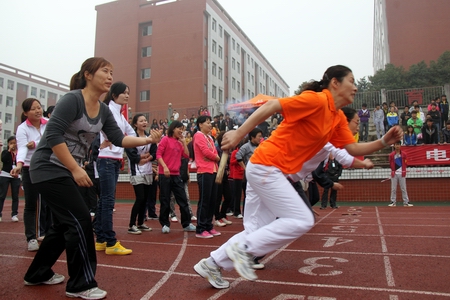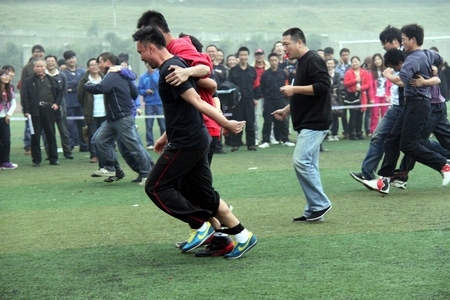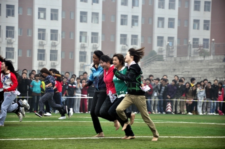 我院院长刘建湘(左一)参加趣味运动会“三人四足”比赛 与教职员工们一起快乐奔跑