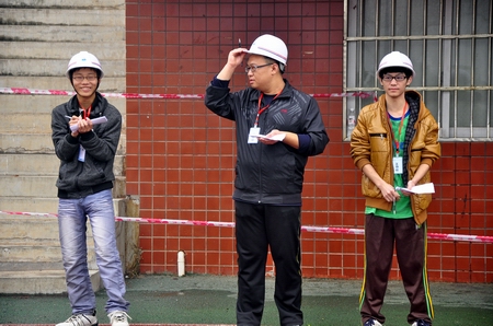 裁判和计分人员非常“敬业”的戴上跟选手一样的安全帽 应景