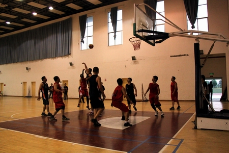 9月19日下午,我院教职工篮球队与湖南省水库移民管理局职工队在中医药大学体育馆进行了一场精彩的篮球友谊赛。水库移民管理局职工队由该局局长杨北伟带队,我院则由院长刘建湘带队,党委副书记龙承海、副院长刘继平、工会主席张志勇、院党校副校长陈方等领导轮番上阵,以球会友。