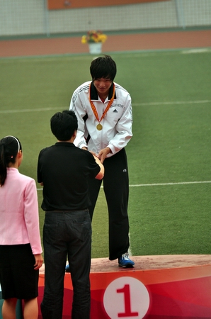 此次参赛由我院党委副书记周立华带队,率领近30余师生组成的代表团在第一个比赛日就从众多高校近500名运动员的参赛队伍中脱颖而出:女子铁饼项目由我院经济管理系物流专业姚双园同学夺得冠军。据悉,该枚金牌为本次田径锦标赛第一金,为学院夺得了荣誉。随后,在女子100米和男子400米比赛中,金牌也分别被我院刘媛媛同学和邓思佳同学摘得。