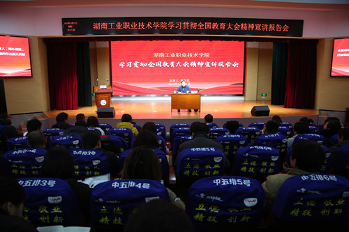 本网讯 12月11日,我校举行学习贯彻全国教育大会精神宣讲报告会,湖南省教育厅党组成员、副厅长、主任督学、省委教育工委委员唐亚武作精神传达讲话,我校校领导、中层干部、科级干部及教职工代表近五百人聆听报告。我校党委书记刘建湘主持报告会。