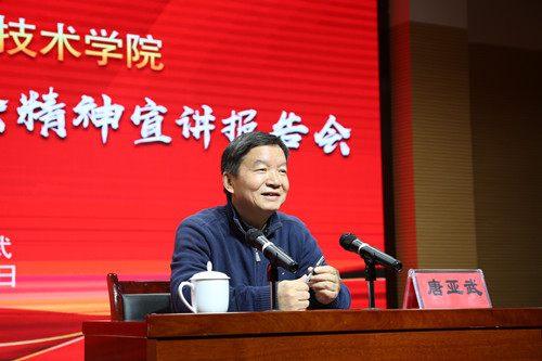 唐亚武从“充分认识全国教育大会的重大意义、深入学习领会习近平总书记关于教育的重要论述、扎实推进加快教育现代化的重点任务、全力确保教育大会精神落地落实”四个方面,深入解读了全国教育大会精神。他指出,要充分认识全国教育大会的划时代、历史性意义,深刻理解和把握掌握习近平总书记关于我国教育事业“九个坚持”的科学内涵和精神实质,理解掌握落实教育优先发展战略、实施新时代立德树人工程、加强新时代教师队伍建设、回应人民群众教育关切、深化教育领域综合改革、提升教育服务经济社会发展能力、加强教育系统党的领导和党的建设等教育现代化重点任务。他提出,要从深入学习好大会精神,广泛宣传宣讲好大会精神,切实贯彻落实好大会精神等方面着力,把全国教育大会精神落实到推动教育改革发展的各项具体工作中去,以办好党和人民满意的教育事业为宗旨,书写教育事业的“奋进之笔”。