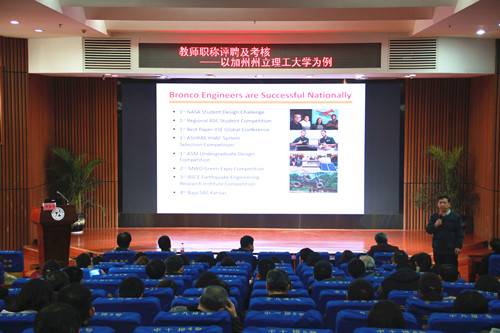 12月18日下午,我校邀请美国加州州立理工大学波莫纳分校贾旭东教授,以“教师职称评聘及考核——以加州州立理工大学为例”为主题展开了专题讲座。学校校领导、科级以上干部、教师代表、学生代表共300余人聆听了讲座。讲座由校党委副书记陈超主持。