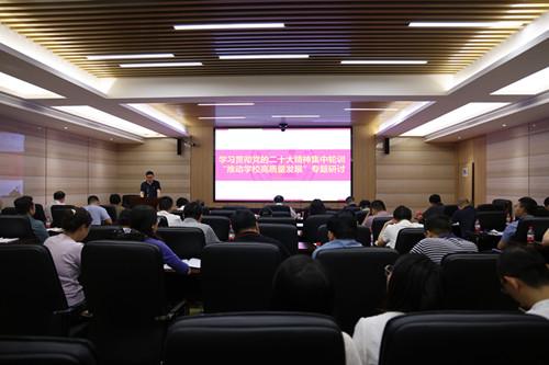 本网讯 6月16日,我校召开学习贯彻党的二十大精神集中轮训“推动学校高质量发展”专题研讨,进一步深入学习贯彻党的二十大精神。学校党委委员、校领导、调研员、学校中层正职领导干部参加学习研讨。本次专题研讨由党委委员、副校长成涛主持。