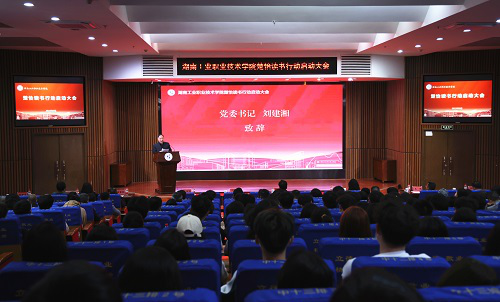 学校党委书记刘建湘致辞,他介绍了学校组织开展楚怡读书行动的背景,从“为什么读书”“读什么书”“怎样读书”三个方面做了分享,他指出领导干部要在读书中加强党性修养、坚定理想信念、提高精神境界;老师们要在读书中丰富知识、更新观念、提升能力;同学们要在读书中开阔视野、启迪智慧、陶冶情操。各二级学院要结合实际开展“一院一品”读书品牌建设,挖掘典型、树立榜样,形成“班班有活动、人人都参与”的活动机制。他希望学校师生争做“读书行动”的参与者、实践者、推广者,传承发扬“爱国、求知、创业、兴工”的楚怡职业教育精神,增强志气骨气底气,担起民族复兴的重任。