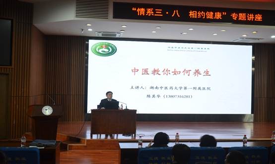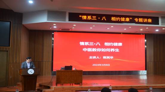 为了使大家进一步了解中医药养生常识,增强科学保健意识,促进个人身心健康,在“三八”国际妇女节到来之际,图书情报信息中心在图书馆多功能报告厅成功举办了一场“情系三八相约健康”专题讲座。此次讲座邀请了湖南中医药大学第一附属医院陈其华教授作为主讲嘉宾,吸引了众多师生的关注和参与。