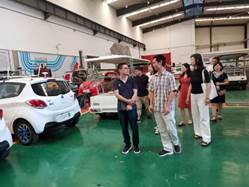 在黄主任的带领下调研组参观了该校新能源的实训场地,学校与多家知名汽车企业合作共建实训基地,目前合作的产商有:东风本田、一汽大众、东风标致雪铁龙、上海大众、上海通用等。学校提供场地,企业提供设备,一方面为学生实训提供环境,同时也作为企业的培训基地,进行员工的培训。