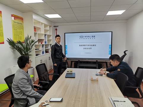 段佳冬从企业背景、智能网联汽车发展、智能汽车技能竞赛、智能网联汽车课程建设、实训室建设等方面介绍了智能网联汽车专业的建设方向及校企合作的意愿。陈义指出,建设智能网联汽车相关的专业核心在于师资队伍的建设,希望能够与企业通过多种方式加强师资队伍的建设,能够为我院开办相关专业提供强有力的技术支撑。