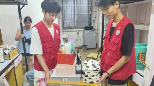 在学院寝室调整期间,志愿者们又自发地组织起来,义不容辞地帮助学生们搬寝,确保学院调寝工作有序、高效进行。他们肩扛手提,不怕脏、不怕累,不断搬运行李的学生党员和不停来往的红色志愿服构成了靓丽的风景。