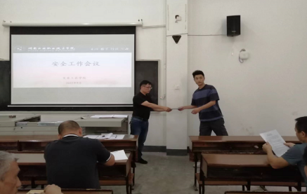 周猷传达了学校安全工作会议的精神,对芙蓉工匠学院安全工作作了部署,要求全体教职工认真贯彻落实部门安全工作制度,切实落实好实训教学安全、消防安全、意识形态安全、网络信息安全和个人人身财产安全。随后,周猷为实训教师发放了《九游·官方网站实训指导教师安全责任书》。