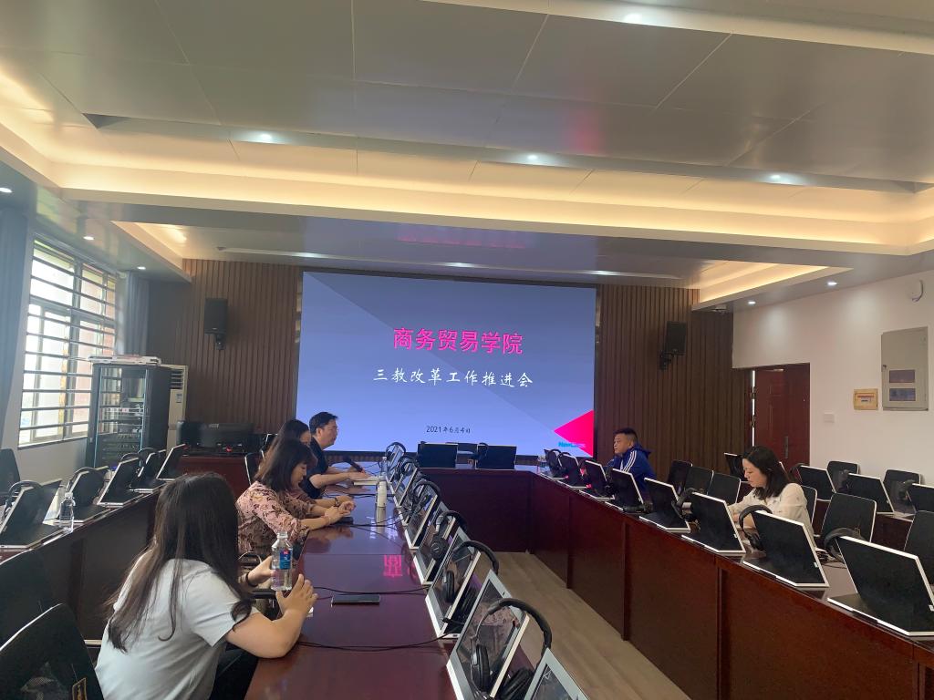 6月4日,商务贸易学院“三教改革”推进会在5407举行。会议由学院申奇志院长主持,并着重介绍了我院“三教改革”的实施方案。
