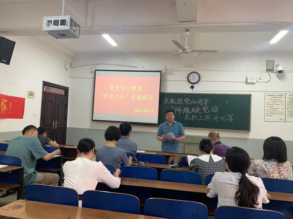 在贯通学史明理、学史增信、学史崇德、学史力行的基础上,突出“学史力行”主题。6月22日下午,商务贸易学院党总支在2213教室开展主题教育二级中心组集中学习研讨。学院领导、党支部书记、办公室主任、教研室主任等相关科级干部参加了会议。会议由党总支委员副书记李清文主讲。