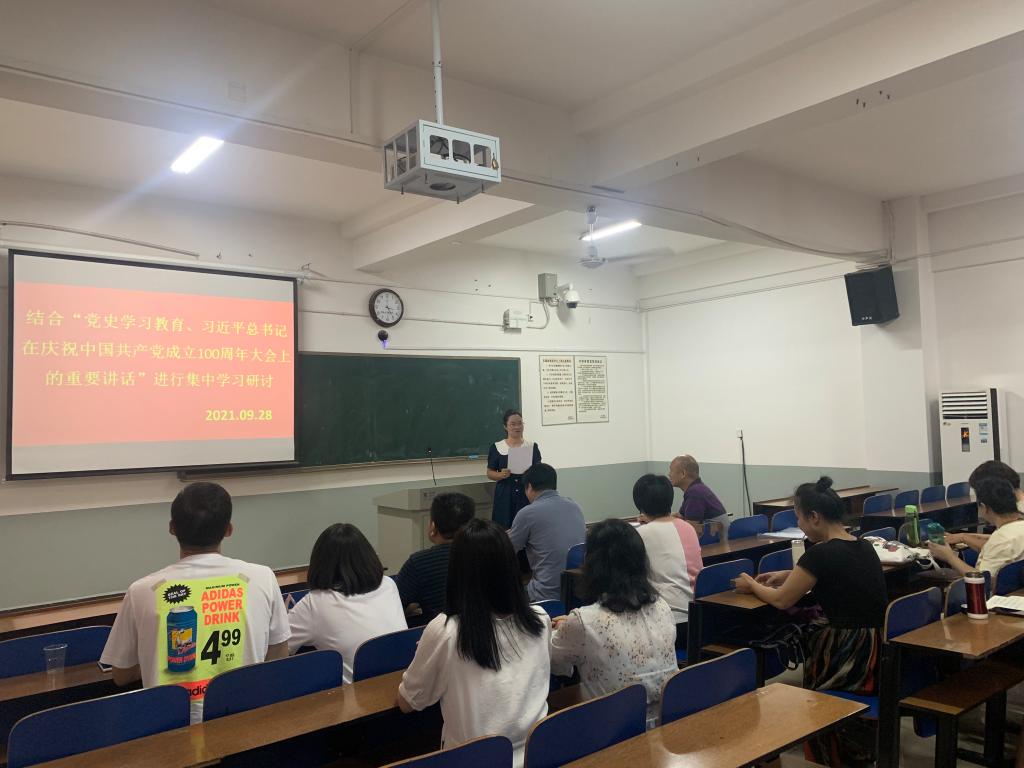 结合党史学习教育、习近平总书记在庆祝中国共产党成立100周年大会上的重要讲话进行学习,9月28日下午,商务贸易学院党总支在2213教室开展主题教育二级中心组集中学习研讨。学院领导、党支部书记、办公室主任、教研室主任等相关科级干部参加了会议。会议由党总支委员刘丽群主讲。