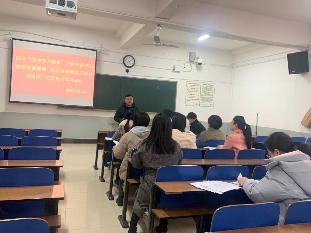 结合党史学习教育、习近平总书记重要讲话精神、法治宣传教育工作会议精神进行。1月15日下午,商务贸易学院党总支在2213教室开展主题教育二级中心组集中学习研讨。学院领导、党支部书记、办公室主任、教研室主任等相关科级干部参加了会议。会议由党总支副书记李清文主讲。