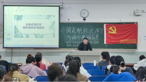 11月29日晚,商务贸易学院学生党支部开展《中国式现代化的内涵和光明前景》主题党课活动,由商务贸易学院党总支书记李清文主讲。商务贸易学院学生党支部全体党员参与本次党课学习。