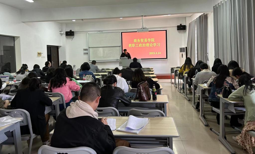 3月14日下午,商务贸易学院在博文楼5602教室开展了2023年3月教职工政治理论集中学习,全体教职员工参加学习。会议由学院党总支书记李清文主持。