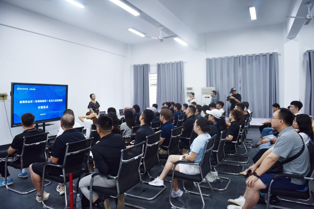 近日,商务贸易学院承办的“新媒体运营(短视频创作)”社会学员技能培训班在学校博文楼101室大学生创新创意基地顺利开班。此次培训班共吸引了湖南顺时针健康管理有限公司、长沙宝悦汽车服务有限公司、湖南省联创低碳经济发展中心、新田职业中专学校、斐石科技等多家企业参与。学院副院长何倩、副院长吴代文、实训中心主任姚益军和相关老师参加了此次开班仪式。湖南青年摄影家协会、湖南vivo为本次培训提供了相关技术支持。