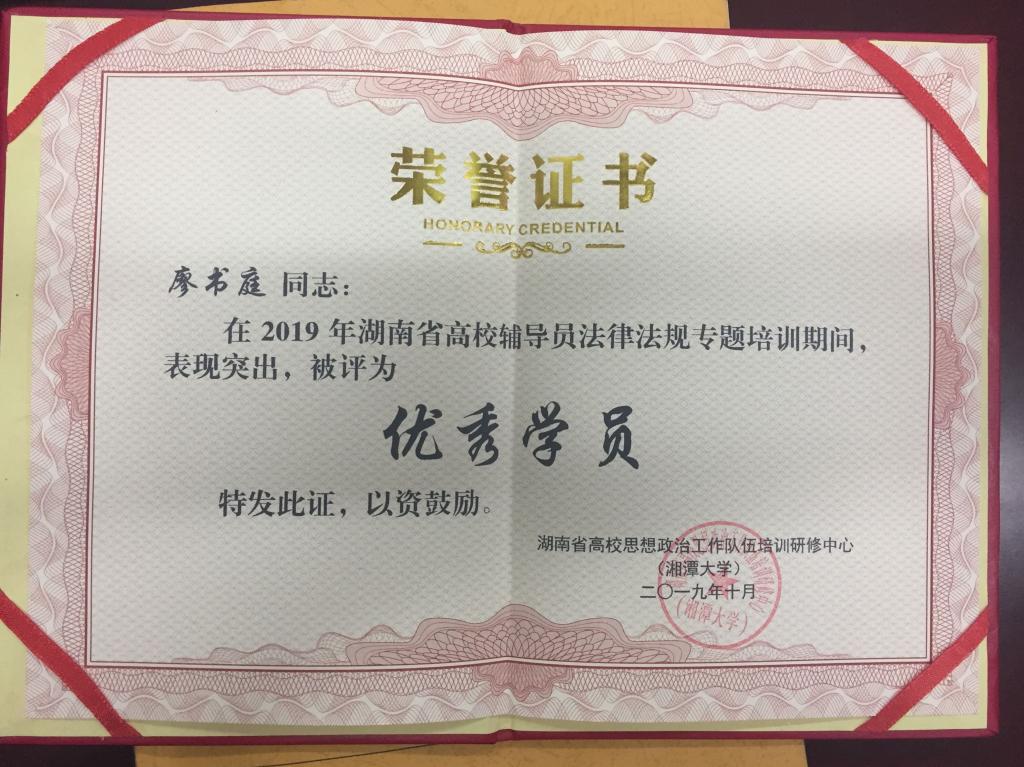 2019年湖南省高校辅导员法律法规专题培训优秀学员