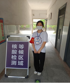 商英2019-1班学生党员苏佳妮积极响应号召,在月亮岛街道中华岭村防疫指挥中心的安排部署下,参与辖区人员集中核酸检测工作。第一次穿上防护服的她,连续奋战,内里的衣物早已湿透也浑然不知,深刻感受到了医护人员工作的伟大和不易,她说:“工作虽然很辛苦,但我觉得很荣耀,我也深刻体会到了‘我是党员我先上’这句经典话语的涵义,以后还有这样的志愿服务,我一定报名!”