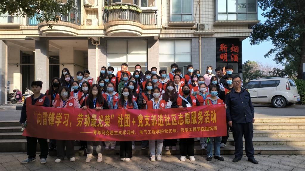 为弘扬“奉献、友爱、互助、进步的志愿服务精神,鼓励当代青年学习传承雷锋精神,培育和践行社会主义核心价值观,青年马克思主义学习社联合电气工程学院学生党支部、汽车工程学院学生会组织部于3月5日前往靳江名珠小区开展“向雷锋学习,劳动最光荣”社团+党支部进社区志愿服务主题活动。