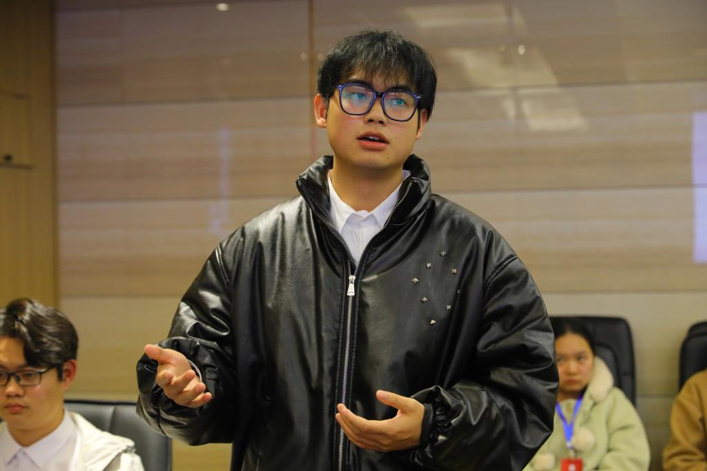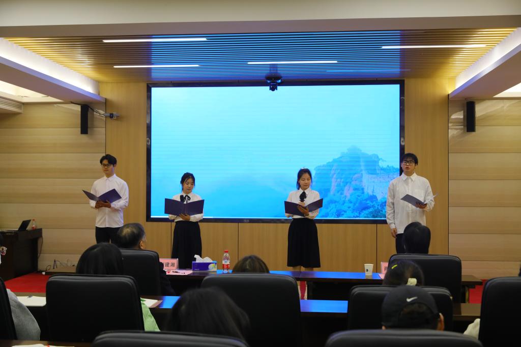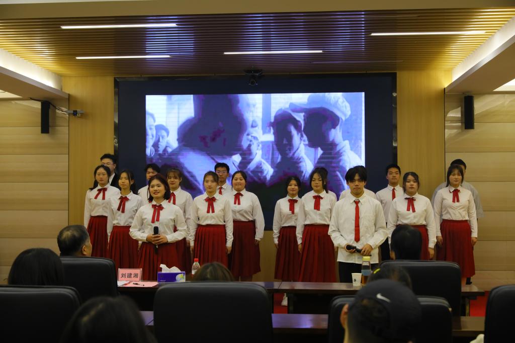此次会议以“赓续伟人精神,传承红色根脉”为主题,活动分为两个部分进行,首先是青马社成果汇报。通过“我的青马足迹”视频展示了青马社社员及指导老师的成长历程。刘函同学在《恰同学少年》的读书分享环节中表达了从伟人故事中汲取学习动力与奋斗力量的决心。唐奡、涂华隆、田鑫三位同学《七律·人民解放军占领南京》的诗词朗诵和书法展示声情并茂地展现了诗中的革命精神、民族气节和家国情怀。吴凌峰同学则为大家带来了《终身的海军司令员—肖劲光》的红色故事,故事展现了革命先烈的英勇事迹。随后,社员罗晨、杨勇、陈远和、刘姝彤四位同学带来了《复兴颂》的朗诵,展现了新时代青年对复兴中华的坚定信念。最后,青马社红歌合唱团以饱满的热情演唱了红歌《太阳最红 毛主席最亲》,用歌声表达了对领袖的敬仰之情和传承红色基因的决心。