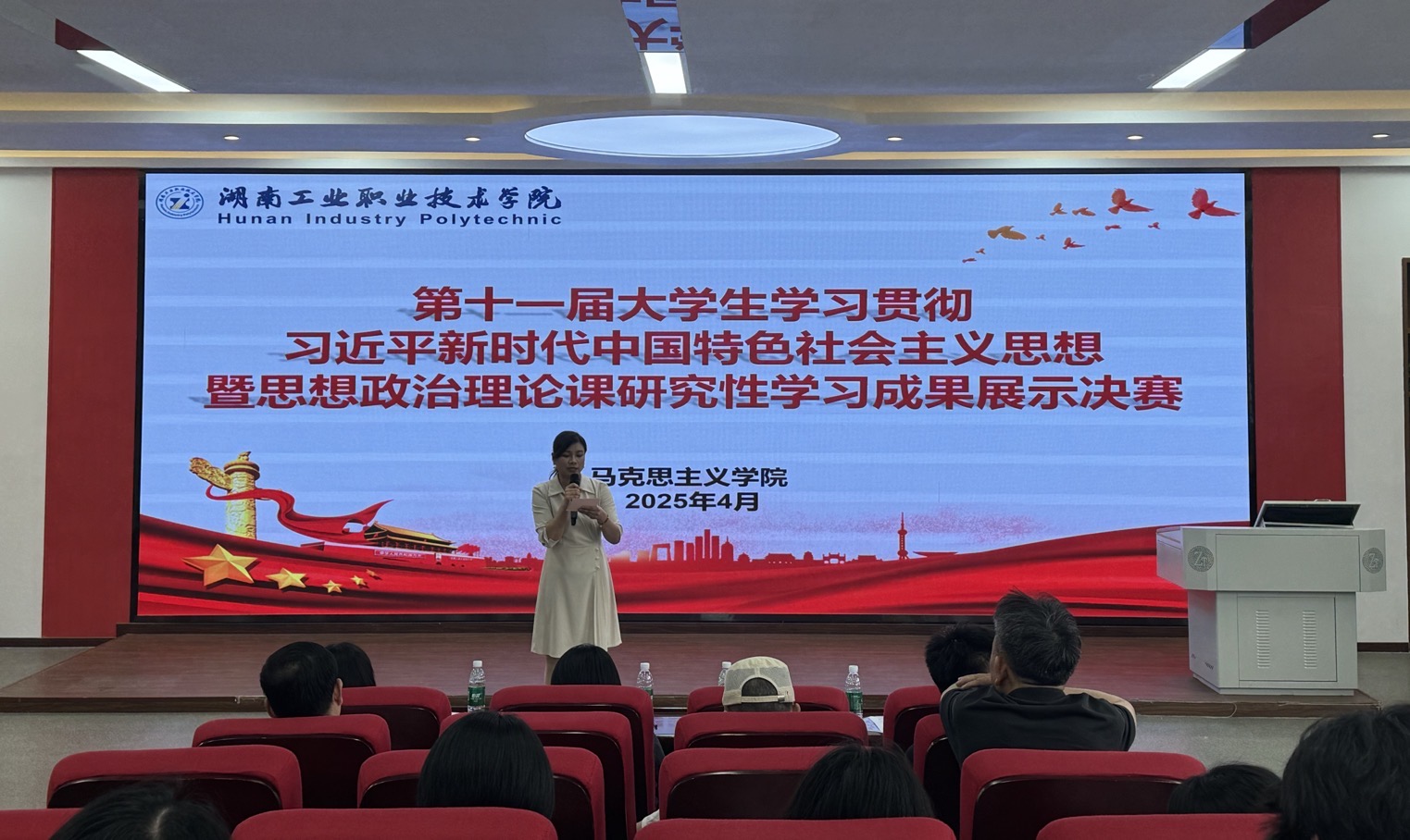 在初赛和复赛阶段,我院邀请校内外专家进行两轮评审,经层层选拔,10支队伍脱颖而出,成功晋级决赛。比赛现场,各研究性学习小组按抽签顺序,依次上台进行12分钟以内的成果汇报。他们紧密围绕 “人工智能”、“新质生产力”、“文化遗产保护传承”、“湖南高质量发展”等主题,从选题缘由、研究综述、研究成果、研究设想和学习体会进行全方位展示,特色鲜明、精彩纷呈,展现了我校新时代青年学子的精神风貌与责任担当,赢得现场阵阵掌声与喝彩。