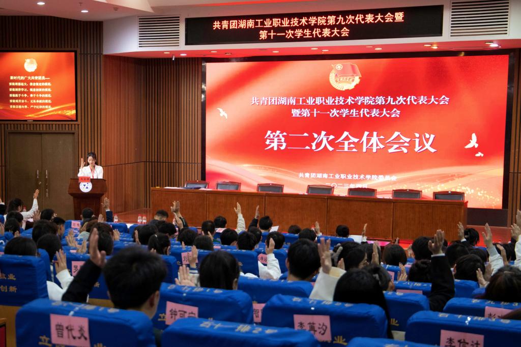 李陟威代表学校团委第八届委员会作题为《高举旗帜跟党走 踔厉奋发育新人 团结带领全校团员青年努力为全面推进“双高”建设和创建职业本科贡献青春力量》的工作报告,对过去三年共青团的工作进行了回顾和总结,提出了今后三年共青团工作的总体目标和任务。