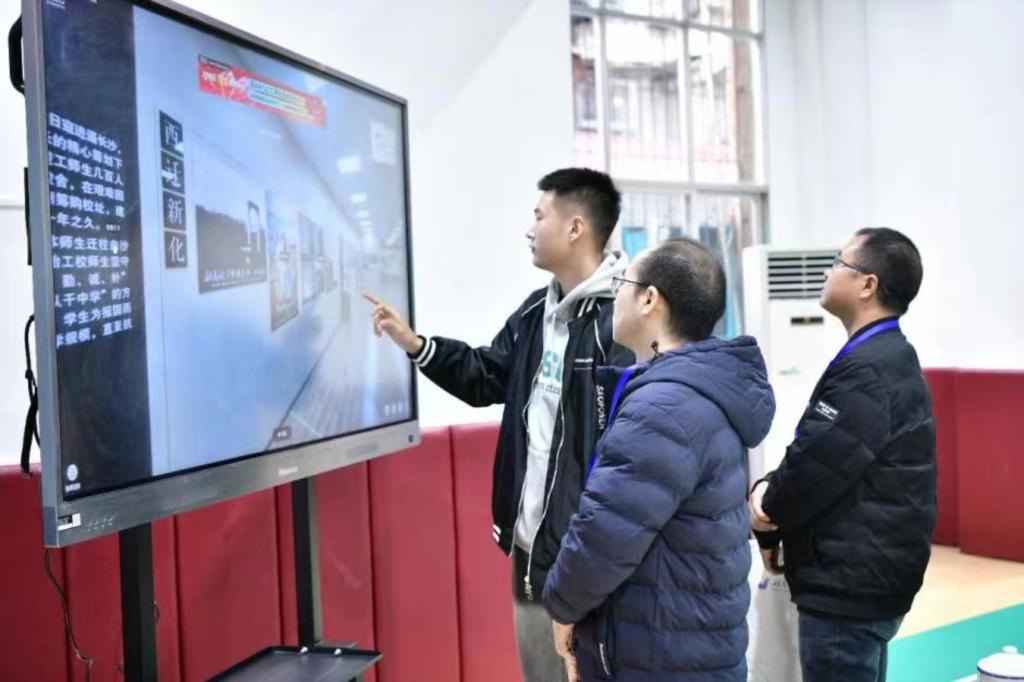 芙蓉区楚怡学校副校长宾斌对我校送展的作品给予了高度的评价:“我认为工院团队的AI助教交互教学作品的虚拟漫游制作流畅度非常好,AR识别也很有新意,加深了受众对楚怡文化的理解。未来,我们也将把AI作为教师的课堂助教,助力教师生成‘AI+学科’的融合课程”。最后,协会代表赵浩然发言说:“此次活动,不仅给我们协会提供了一个发展平台,还帮助我们协会成员提升了个人自身能力和团队协作能力,在之后我们将继续努力前进,站到更广阔的平台”。