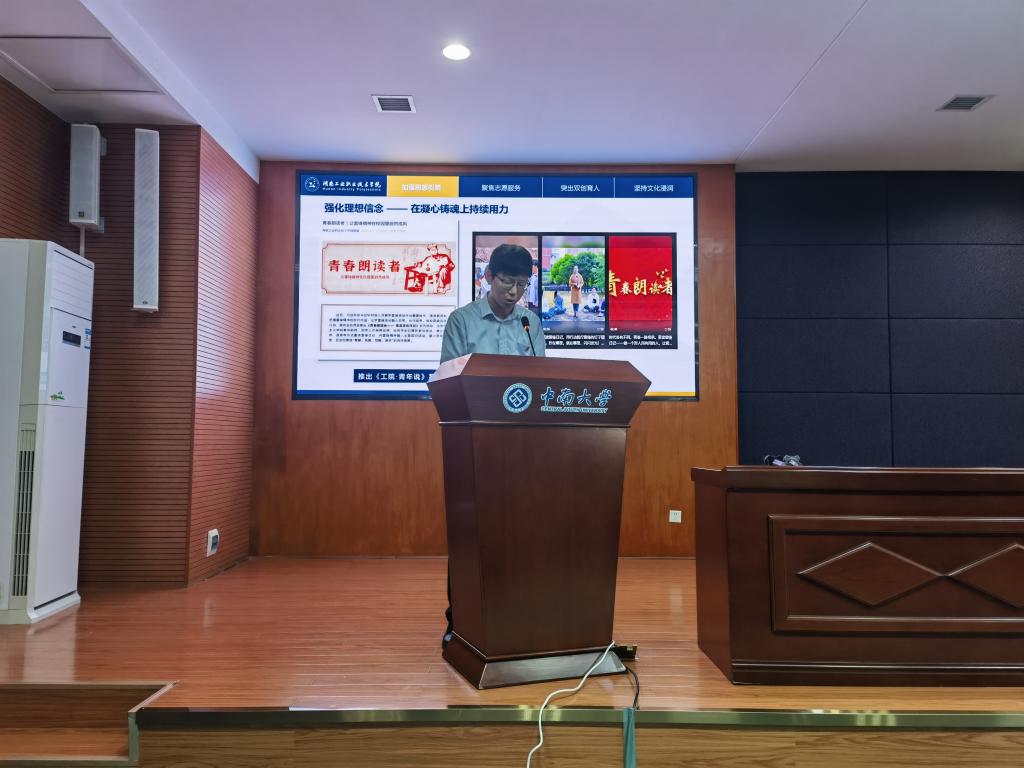 我校以《传承楚怡精神,培育“楚怡”工匠——构建“四位一体”共青团实践育人模式的探索与实践》为题,从加强思想引领,在凝心铸魂上持续用力;聚焦志愿服务,在丰富载体上激发动力;突出双创育人,在双创教育上凝聚合力;坚持文化浸润,在文化活动上精准发力四个方面分享了我校共青团实践育人工作经验。