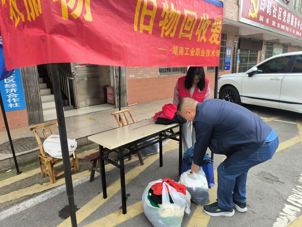 4月22日是第55个世界地球日,为推动可持续发展理念,学习贯彻习近平生态文明思想,校青年志愿者协会在岳麓区白鹤社区开展了“衣加物”公益捐赠活动。