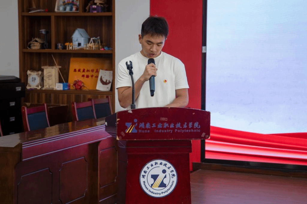 商务贸易学院电商2024-1班周佳颖作为优秀团员代表作了发言。她以“团徽是青春印记与前行动力”为喻,号召新团员在志愿服务与文明实践中锤炼品德,将个人理想融入民族复兴洪流,以“敢教日月换新天”的豪情与“板凳要坐十年冷”的毅力彰显青年担当。
