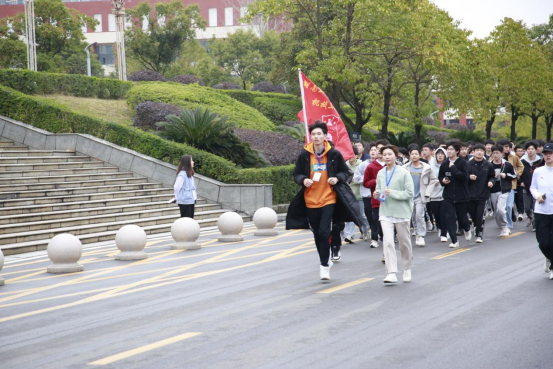 启动仪式后,各学院代表班级高举院旗,从新纪元广场出发,途径行政楼、鹤鸣山、图书馆、公寓门口、田径场等地,最后回到新纪元广场。跑步过程中,同学们响亮、整齐的口号声响彻整个学校,同学们神采飞扬、斗志昂扬,展现当代大学生积极向上的精神风貌。