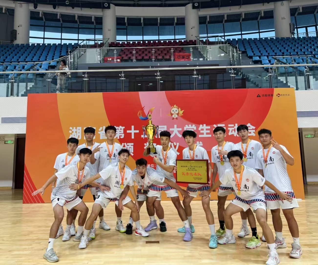 本网讯 9月30日晚,湖南省第12届大学生运动会在湖南理工学院闭幕。经过9天的激烈角逐,我校男篮突破自我,努力拼搏,最终获得高职高专组男篮冠军!