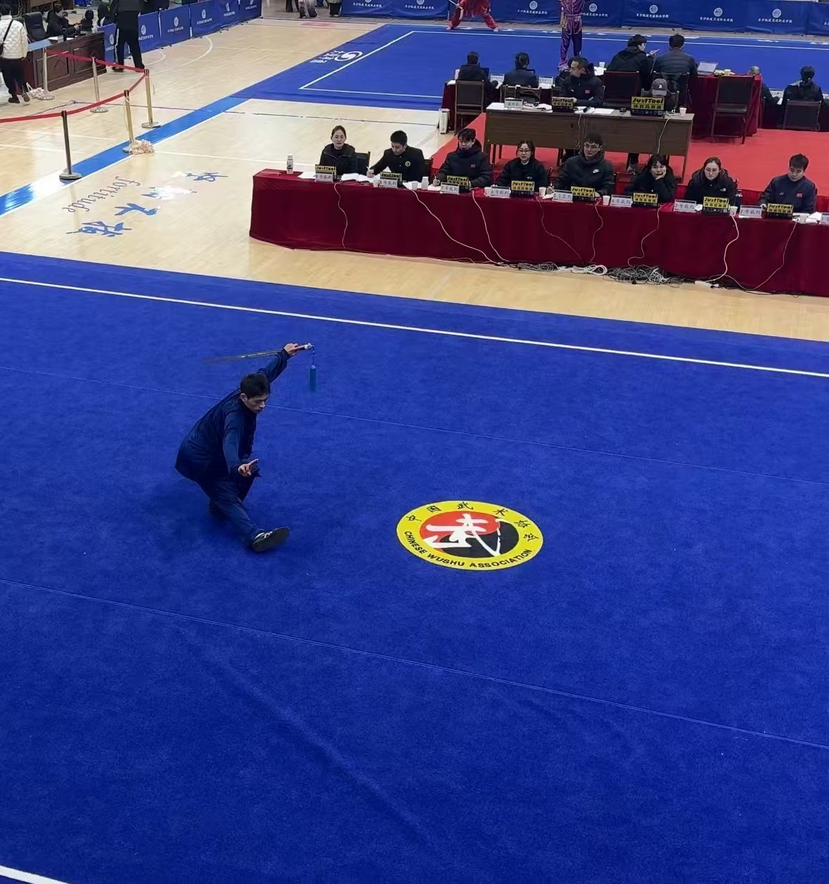 赛场上,我校运动员风采斐然。汽制23-2班的伍嘉怡凭借精湛的太极功夫,勇夺女子丙组自选太极拳与自选太极剑双料冠军,展现了太极之美。国商22-1班的吴贤能同样表现不俗,荣获男子丙组自选太极拳与自选太极剑两项亚军,彰显了我校武术队的深厚底蕴。在乙组(体育专业组)的激烈竞争中,我校电信2024-1班的方润凭借出色的表现,荣获男子乙组软器械第三名。在组合项目中,伍嘉怡与吴秋焰组队获得女子丙组对练第三名,吴贤能与廖安琪组队夺得男子丙组对练第三名。装备2023-2班廖安琪获男子丙组传统拳术二类拳术第五名;营销22-2班吴秋焰获女子丙组传统拳术一二三类第五名;产品 2024-1班余文彪获男子乙组自选刀术第七名。