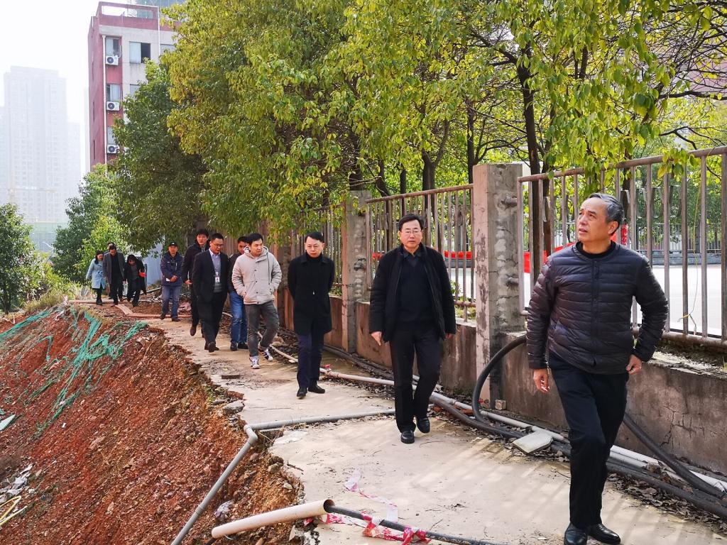 邓建国还与相关部门负责人现场一起查看了新建学生宿舍的建设情况,他指出,学校新建学生宿舍直接关系到学校2019年迎新工作,务必确保相关建设工作进度和质量,为我校2019年迎新工作打好了坚实的基础。他要求各相关部门高度重视,切实采取有力措施,以学生为本,不断优化育人环境,加快工程建设进度,上下合力,努力为广大学生打造一个安全、舒适的学习生活环境。