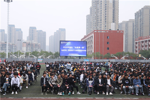 本网讯 11月6日,由共青团长沙市委、长沙市卫生健康委共同举办,面向2020年省会高校大学新生推出的“大学第一课”主题教育活动在我校田径场举行。活动集结了来自长沙市共青团“向日葵”青年讲师团、长沙市学校健康教育志愿服务总队的专业讲师团队。我校团委、学生处、保卫处等相关部门负责人,新生辅导员及全体新生参加了此次讲座。